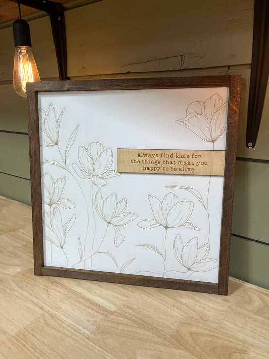 “Find time for the things that make you happy to be alive” sign